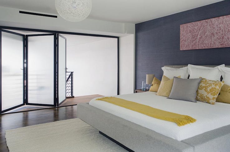 Operable glass walls can help create the resort-like feel in bedrooms and bathrooms in residential applications.