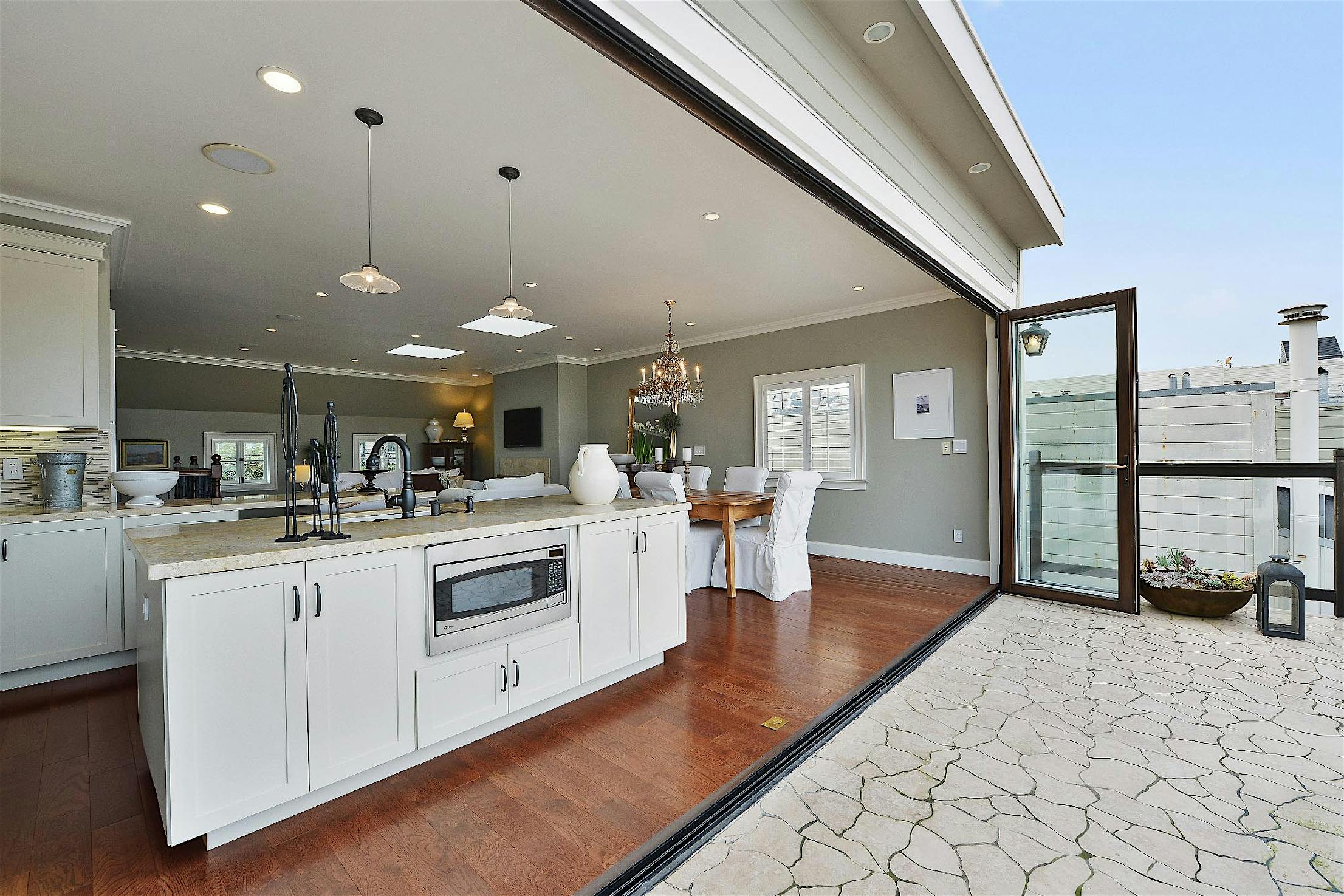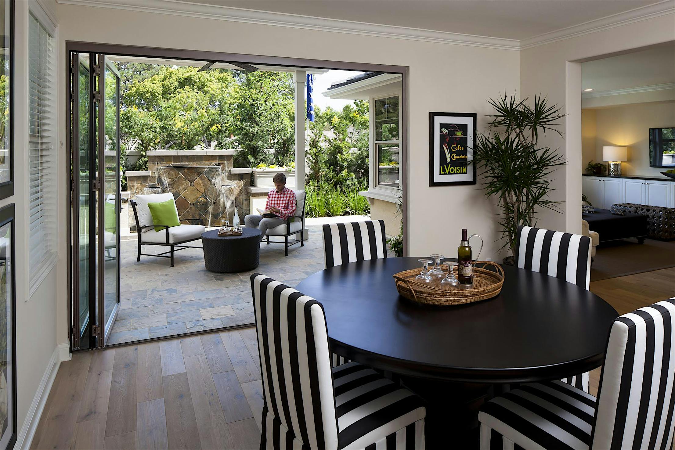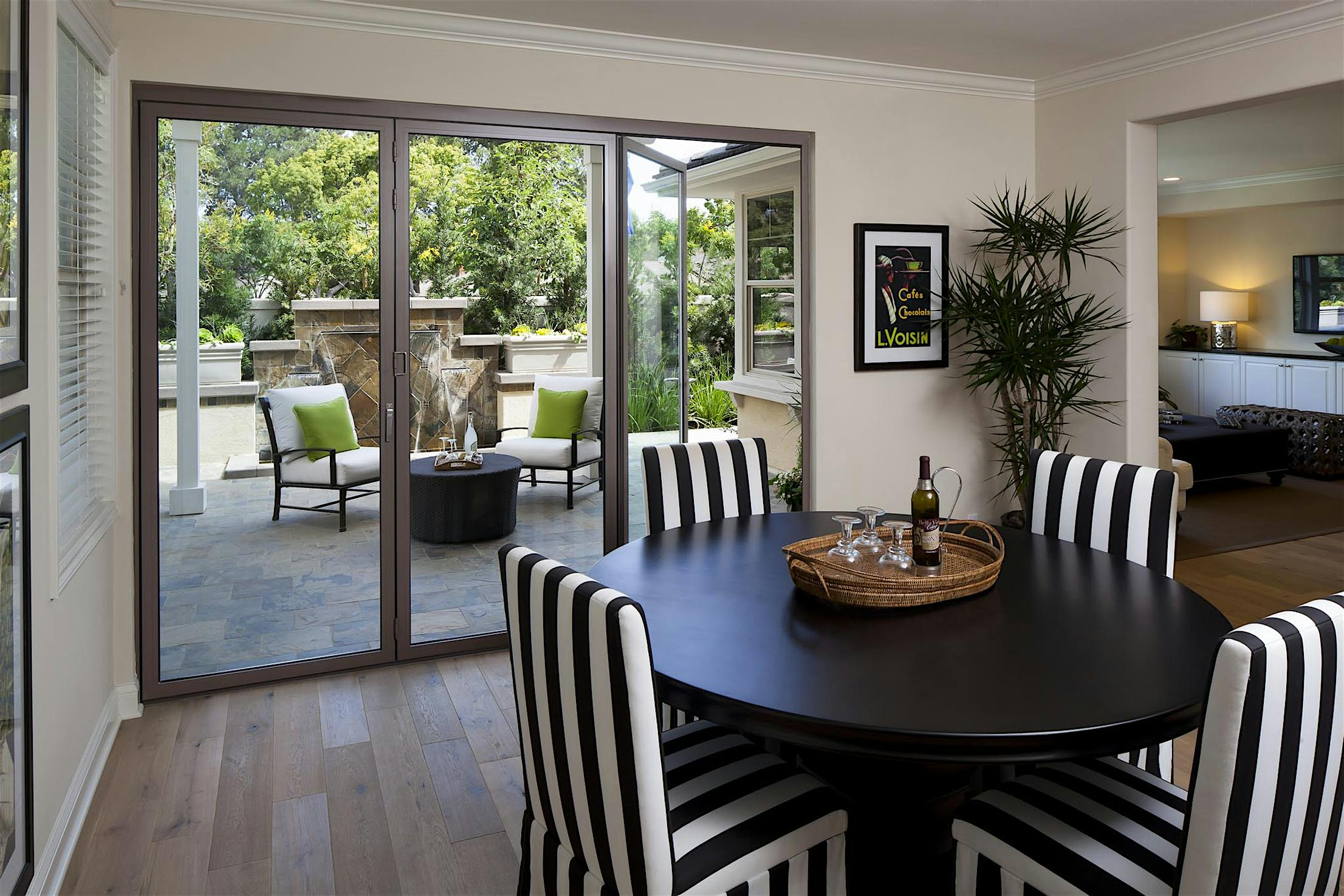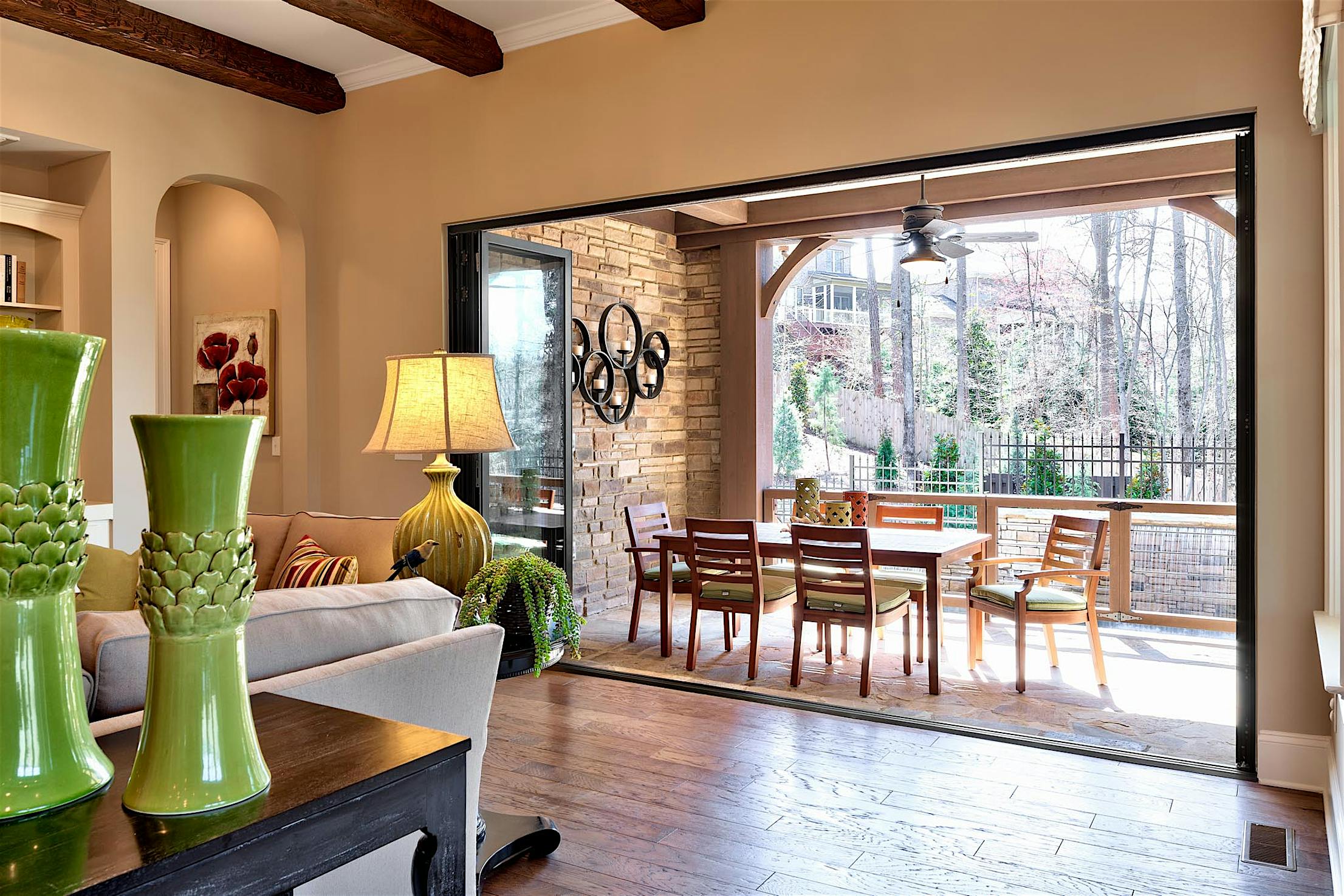 Opening your NanaWall spreads fresh air throughout the home, and on warmer days you can sit in comfort indoors with views , fresh air, and sunlight of the outdoors pouring in.