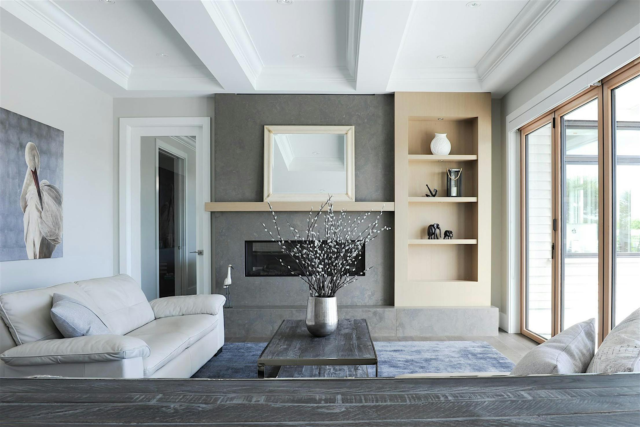 Not-so-wide moving door systems can still significantly transform interior spaces and are perfect for a smaller scaled living room remodel.