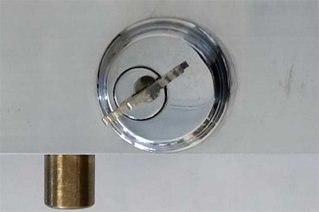 For swing panels with a push/pull or push plate/pull handle options, the bottom rail is outfitted with a half mortise cylinder with key operation on the inside only.